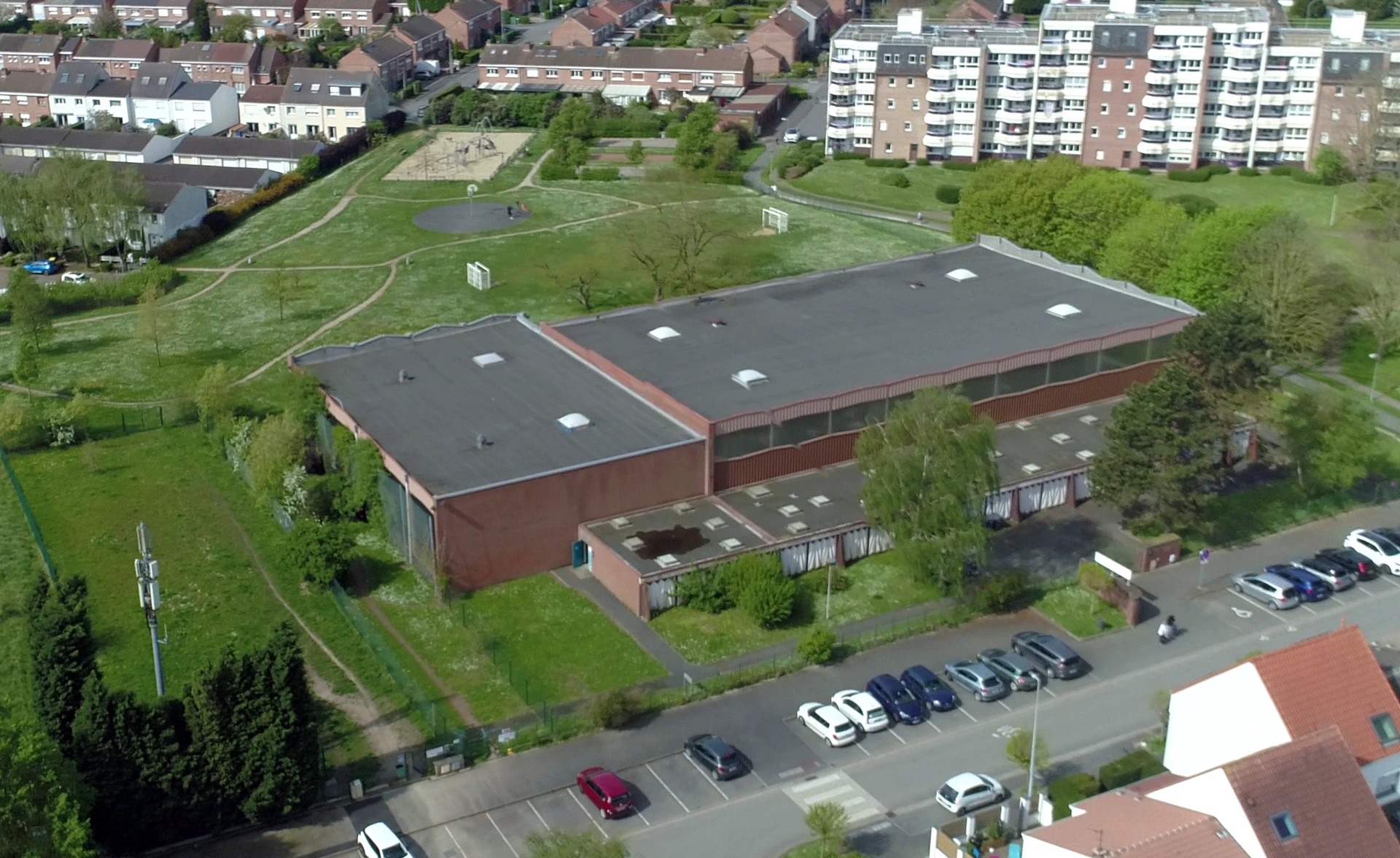 Nous avons étudié plusieurs lieux possibles et en avons conclu que la meilleure solution se trouvait à côté de la salle des sports Norbert-Ségard dans le quartier Nord-Ouest.